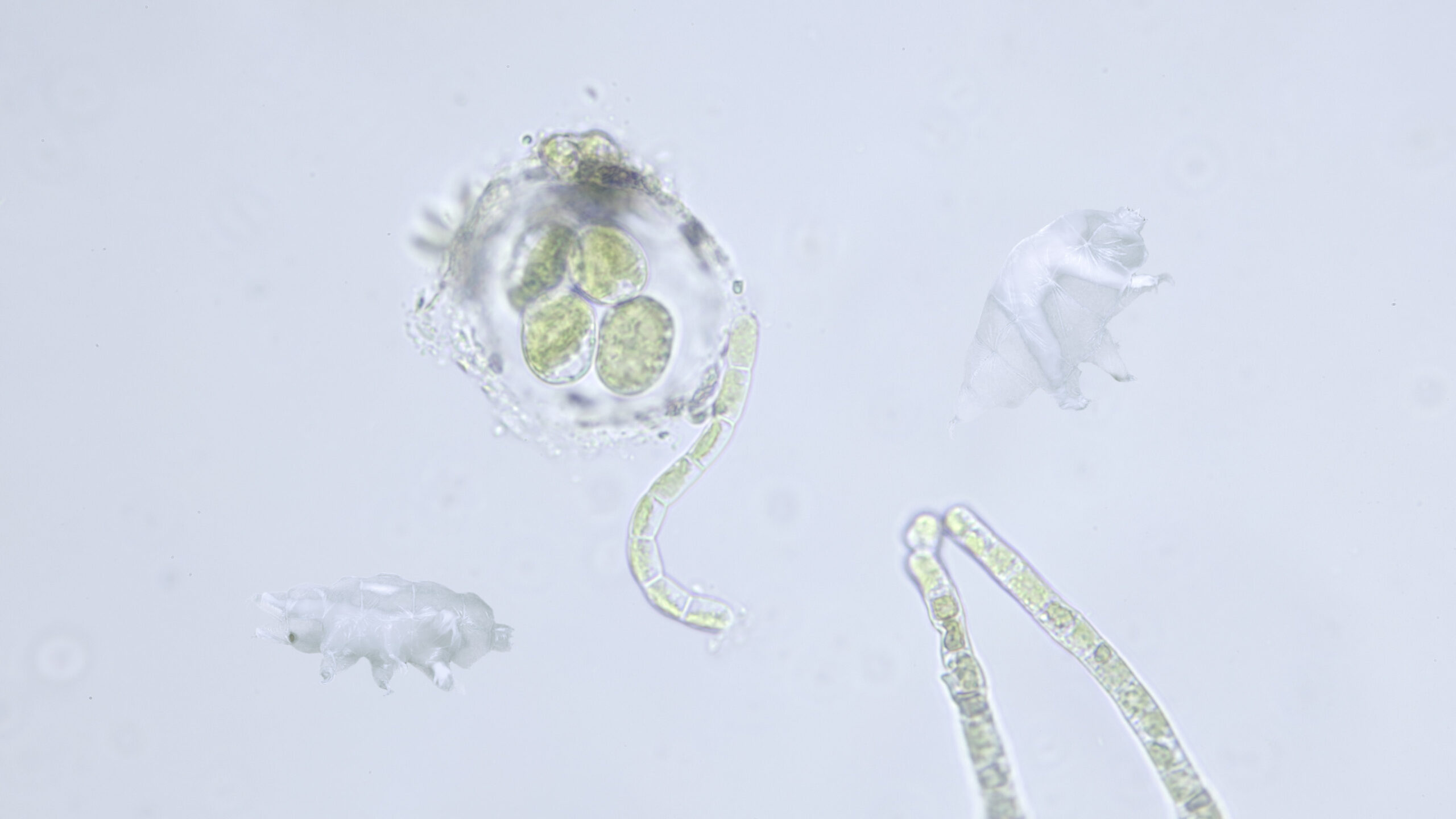 During a microscopic research small water bears (tardigrada) where found.